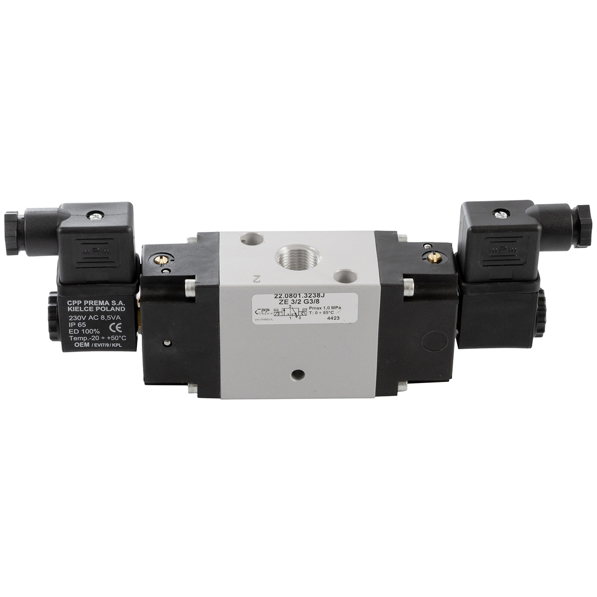 22.0801.3238BL - Elektrozawór pneumatyczny rozdzielający ZE 3/2 G3/8 bistabilny cewki 24V DC 6,5W LED