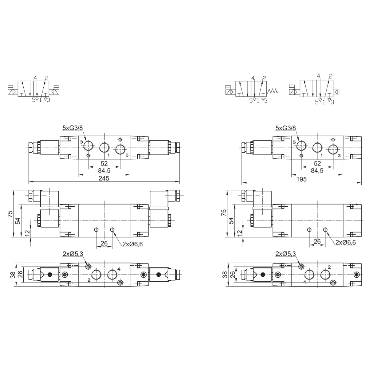 22.0804.5238E - Elektrozawór rozdzielający ZE 5/2 G3/8 monostabilny z ciśnieniem obcym cewka 24V AC 6,5VA