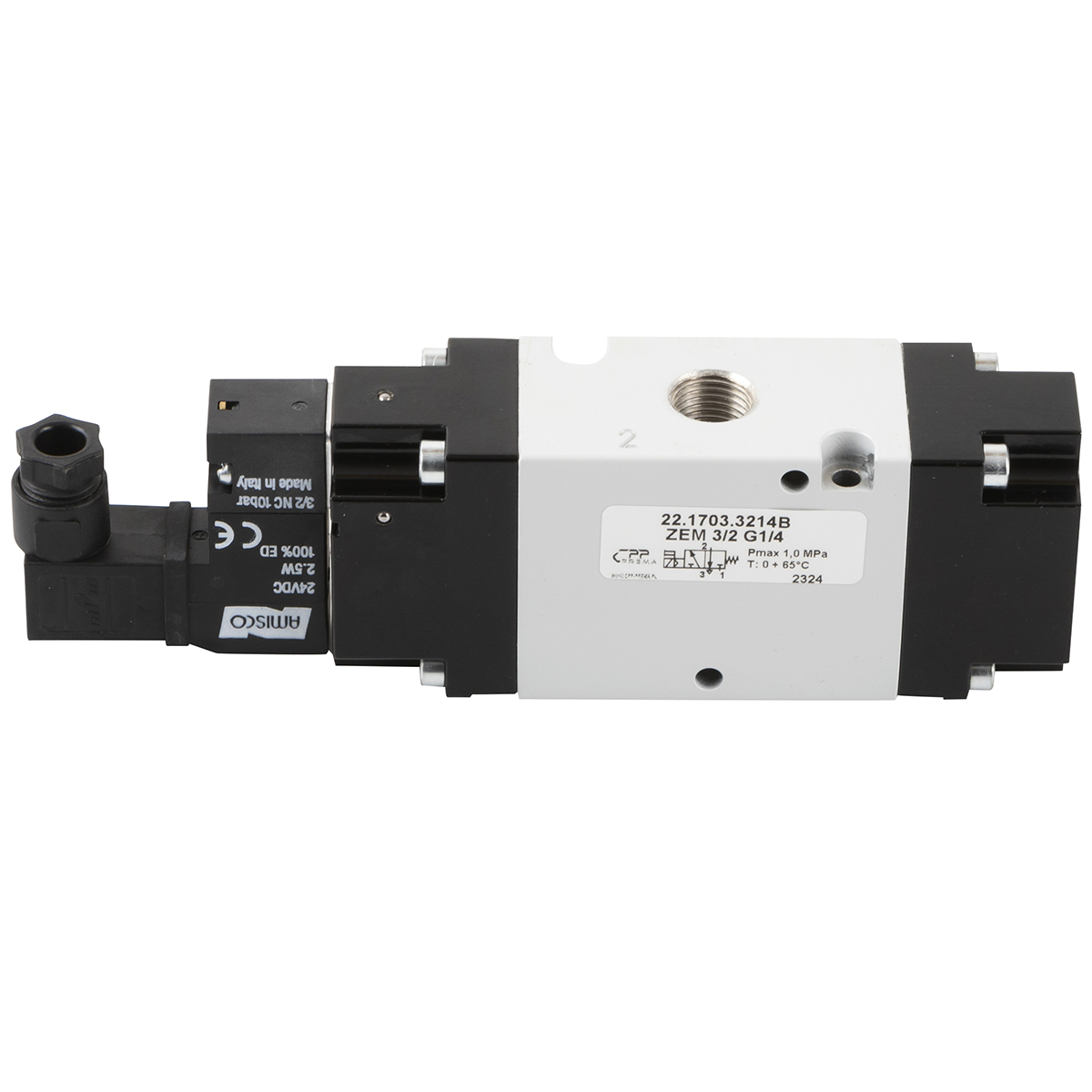 22.1703.3214NOB - Elektrozawór pneumatyczny rozdzielający ZEM 3/2 G1/4 NO monostabilny cewka 24V DC 2,5W
