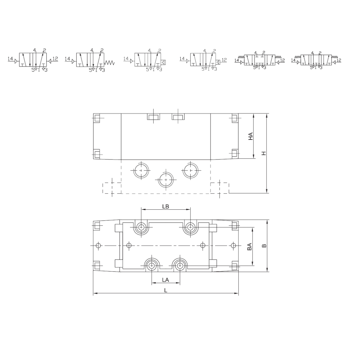 23.0308.531438 - Zawór sterowany pneumatycznie ISO 2 5/3 CO centralnie otwarty ISO5599-1 (zasilany płytowo)