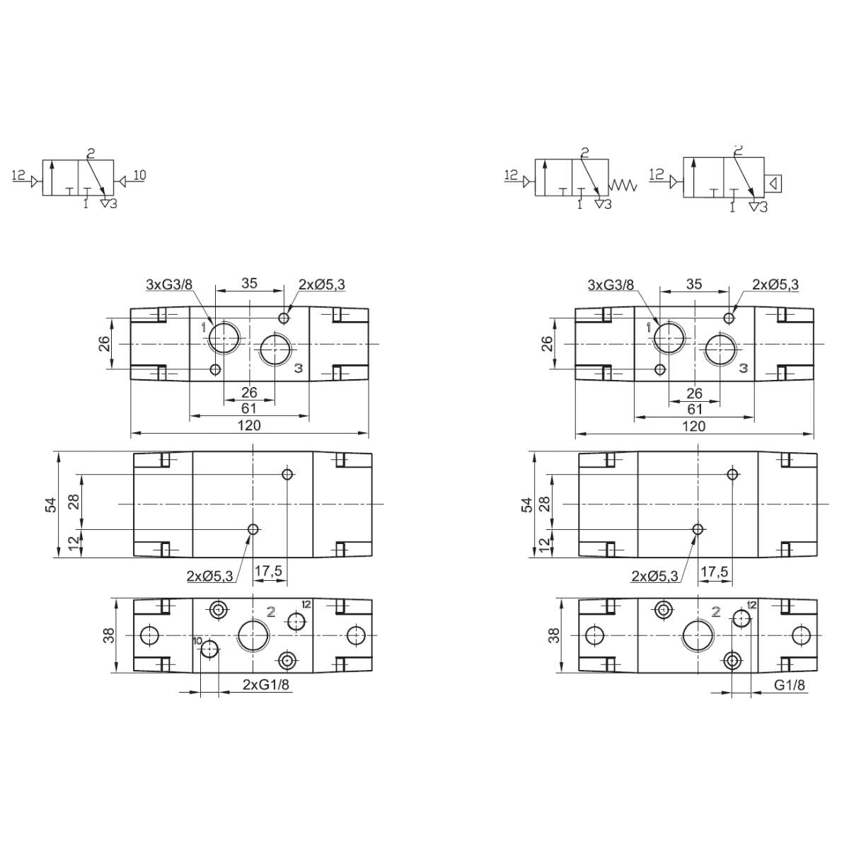 23.0801.3238 - Zawór sterowany pneumatycznie ZP 3/2 G3/8 bistabilny
