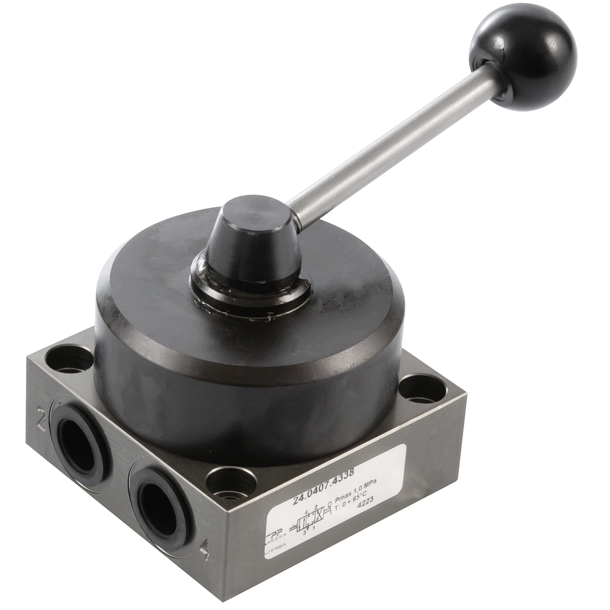 24.0407.4338 - Zawór rozdzielający ręczny płytkowy PM 4/3 G3/8 CC w położeniu środkowym centralnie zamknięty