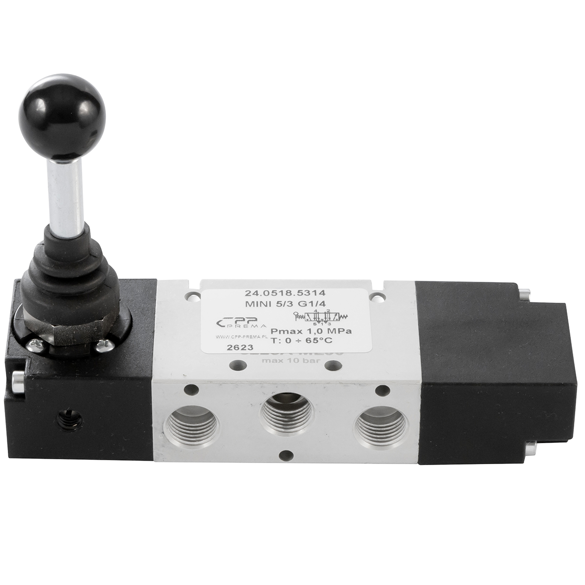 24.0518.5314 - Zawór z dźwignią TM 5/3 G1/4 CO centralnie otwarty, centrowany sprężynami