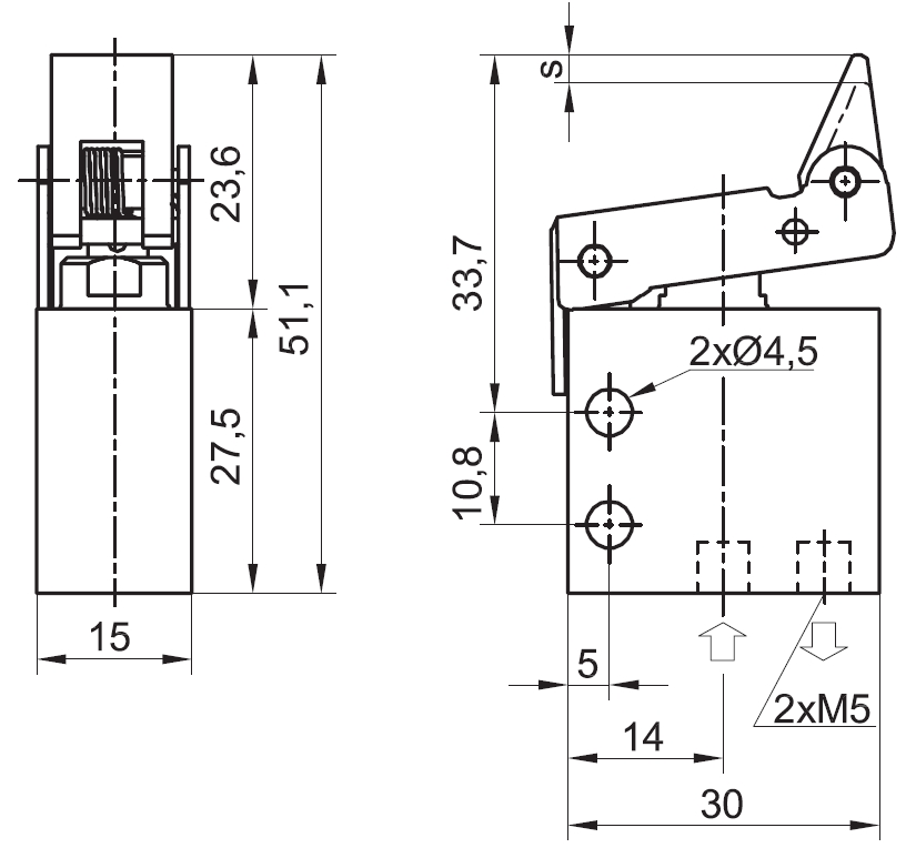 24.1603.315MR - Zawór mechaniczny 3/2 NO normalnie otwarty, dźwignia z rolką zasilanie dolne M5