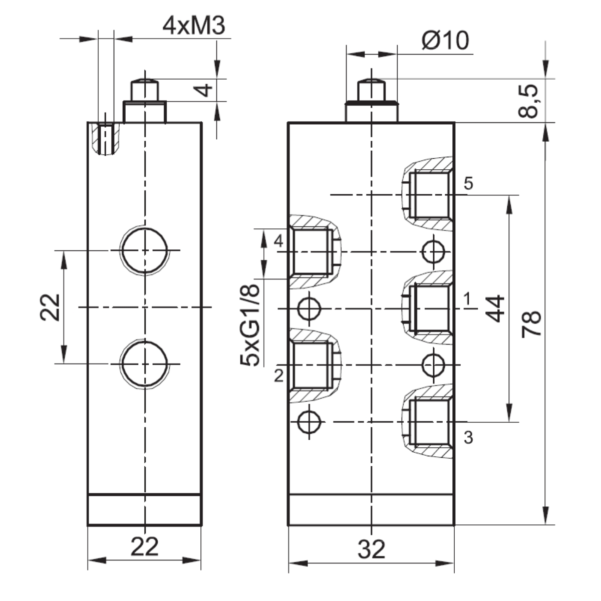 24.2600.5218 - Zawór pneumatyczny rozdzielający ręczny 5/2 G1/8 sterowany trzpieniem