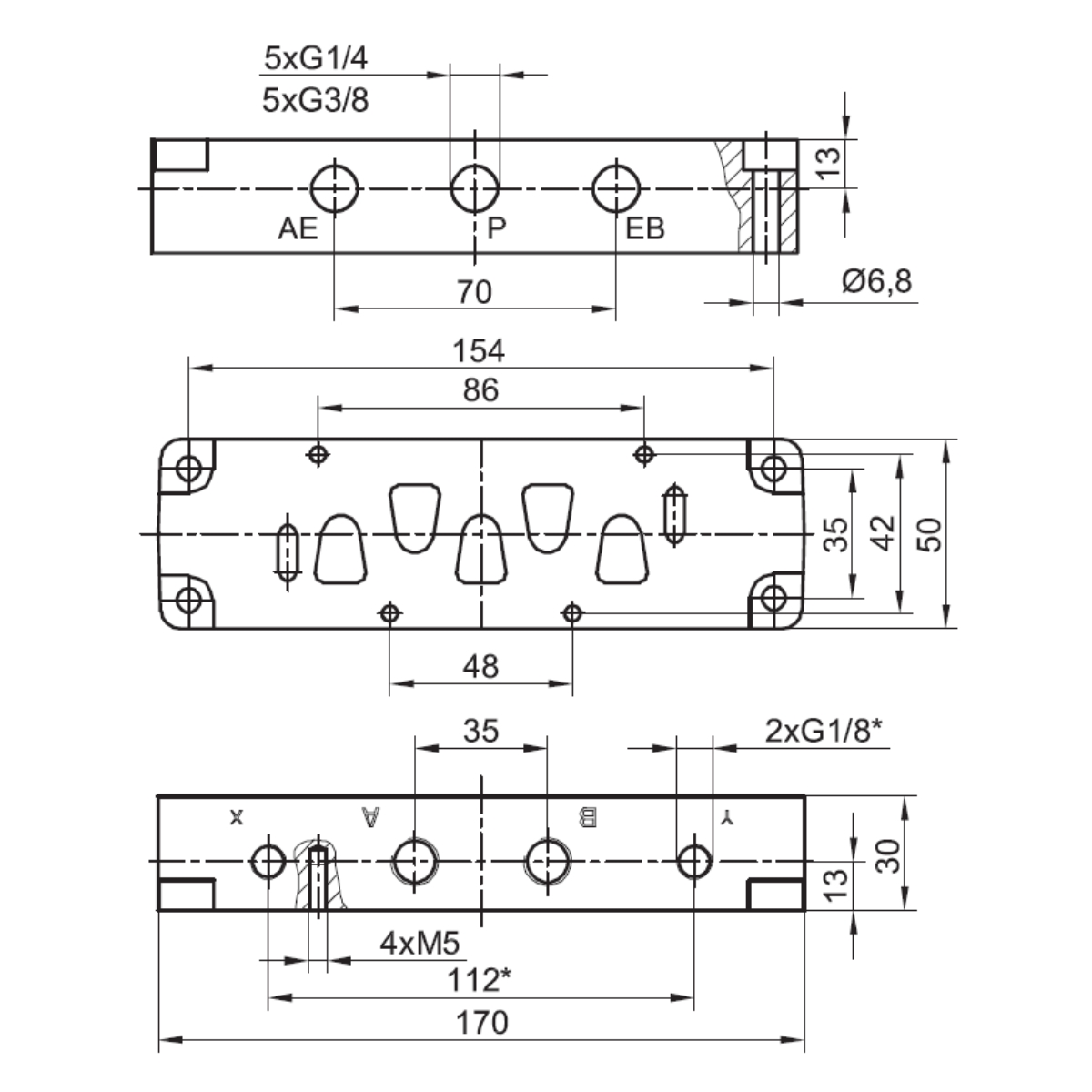 25.0103.525338 - Płyta przyłączeniowa 5-drogowa G3/8 do DTE i DTM wielkość 2