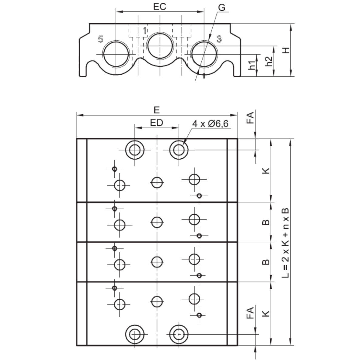 26.2701.521405 - Blok płyt przyłączeniowych 5-dr. G1/4 n- 05 do zaworów ZMG G1/4 5/2 - 5/3