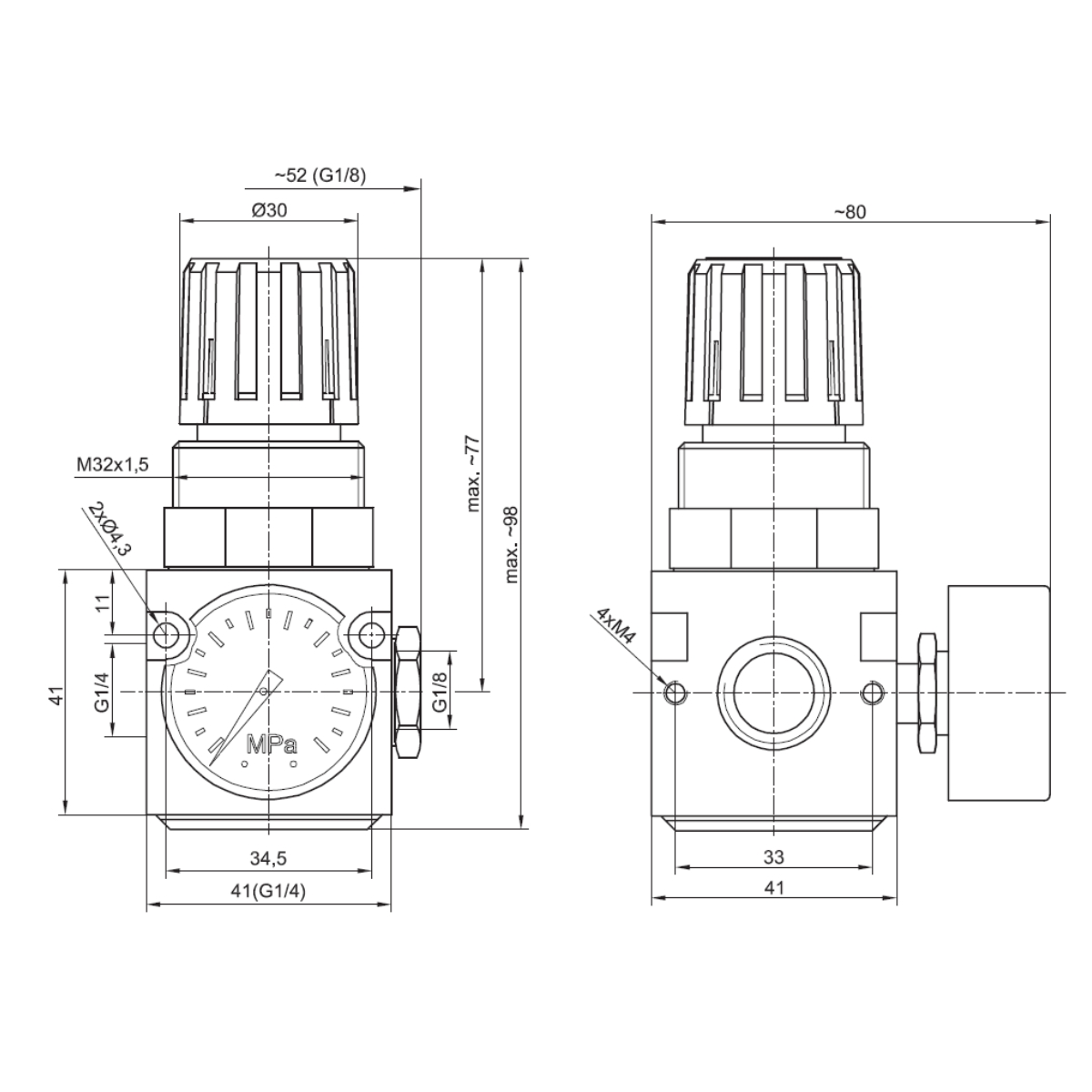 - Reduktory sprężonego powietrza seria MINI G 1/4"