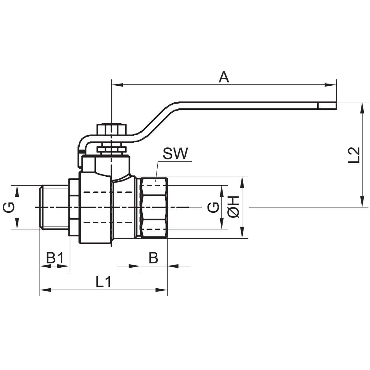 50.5006.103Z - Zawór odcinający kulowy G1 typ ZW gwint zewn/wewn przelot fi 25 PN30