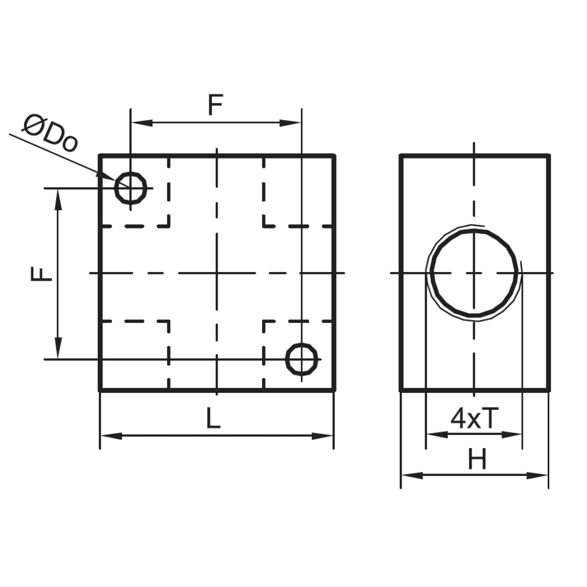 - Czwórniki gwintowane typu kostka WWWW aluminium seria 60.0158