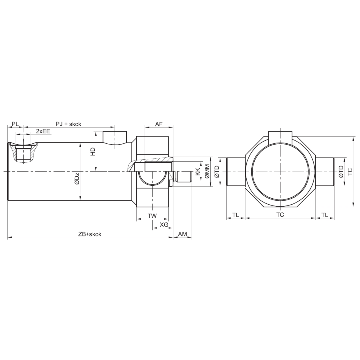 - Siłowniki hydrauliczne dwustronnego działania z jarzmem na czopach typu T4 UCJ5
