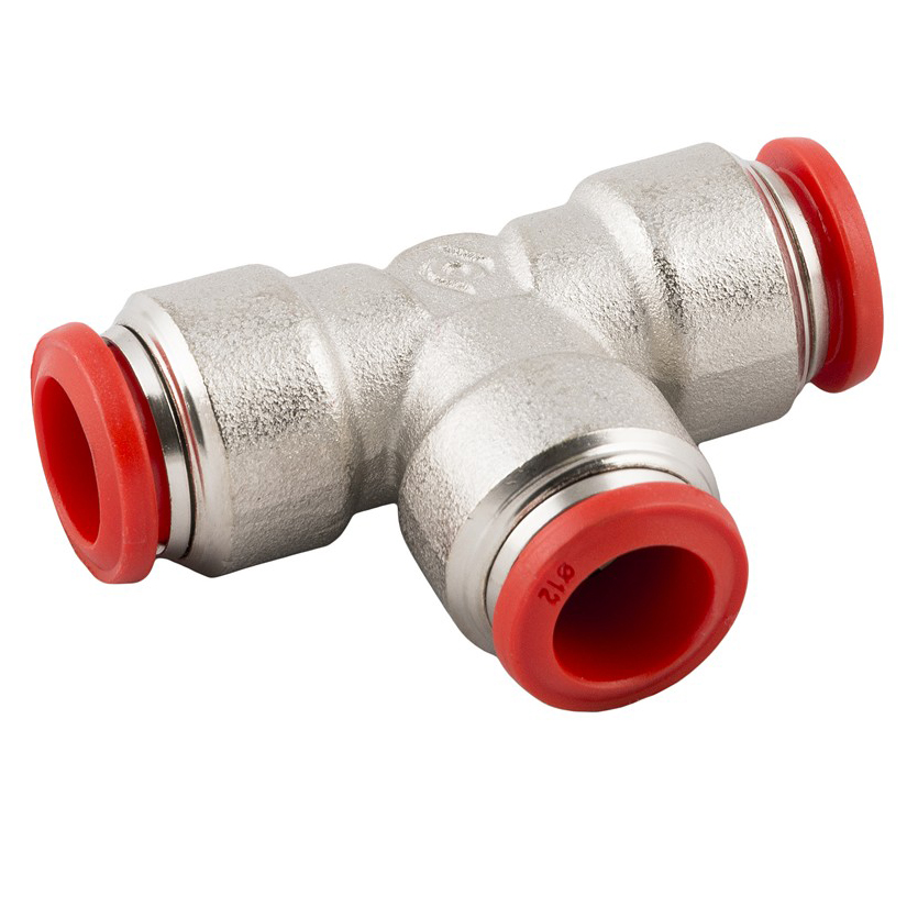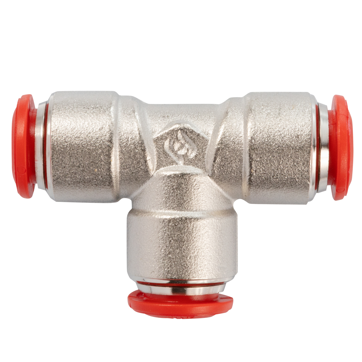 80.0050.11.06 - Trójnik wtykowy typu T do przewodu fi 6 mm, mosiądz niklowany