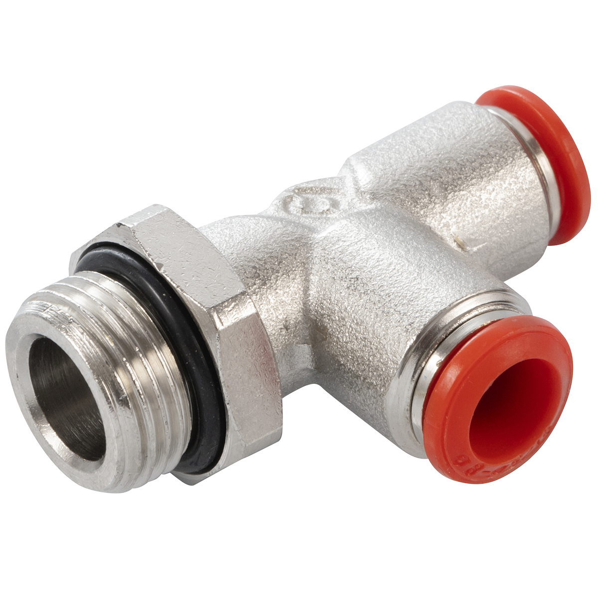 80.0050.18.1408 - Trójnik wtykowy typ F, gwint zewnętrzny G1/4 do przewodu fi 8 mm, mosiądz niklowany