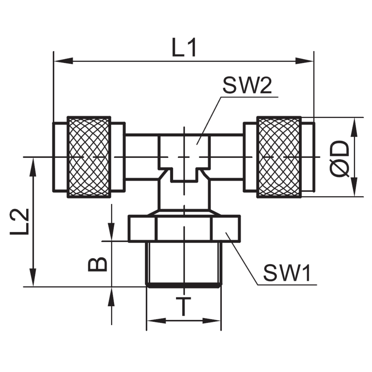 80.0063.14.0806 - Trójnik skręcany obrotowy typu T, gwint zewnętrzny G1/4 do przewodu fi 8/6 mm, mosiądz niklowany