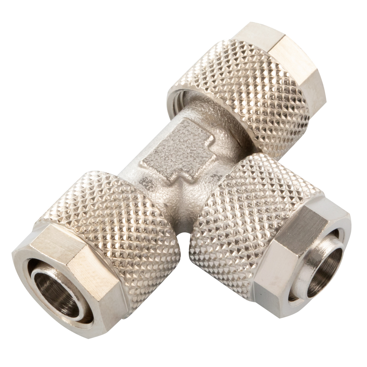80.0064.0604T - Trójnik skręcany typu T do przewodu fi 6/4 mm, mosiądz niklowany