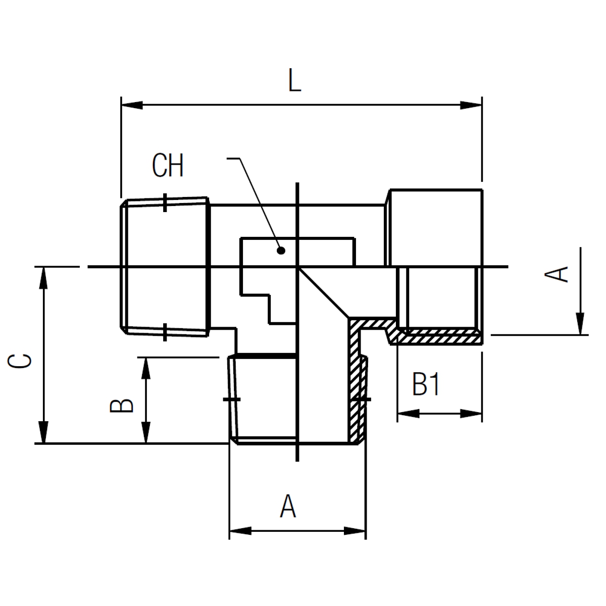 80.0306.38 - Trójnik gwintowany typu T ZWZ 2 x G3/8 GZ - G3/8 GW, mosiądz niklowany