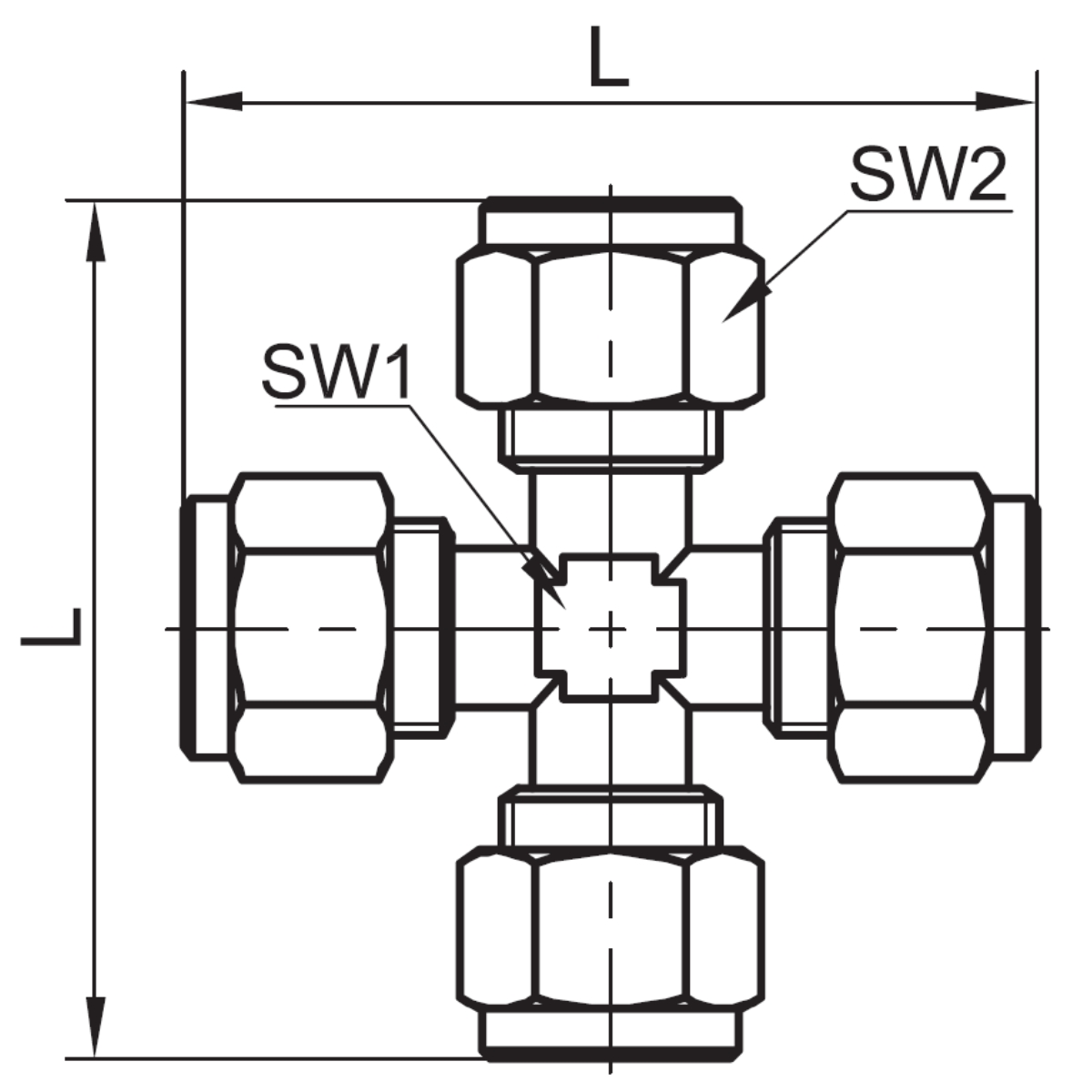 80.1030.14 - Czwórnik skręcany do do rur miedzianych 14, mosiądz/10510-A/