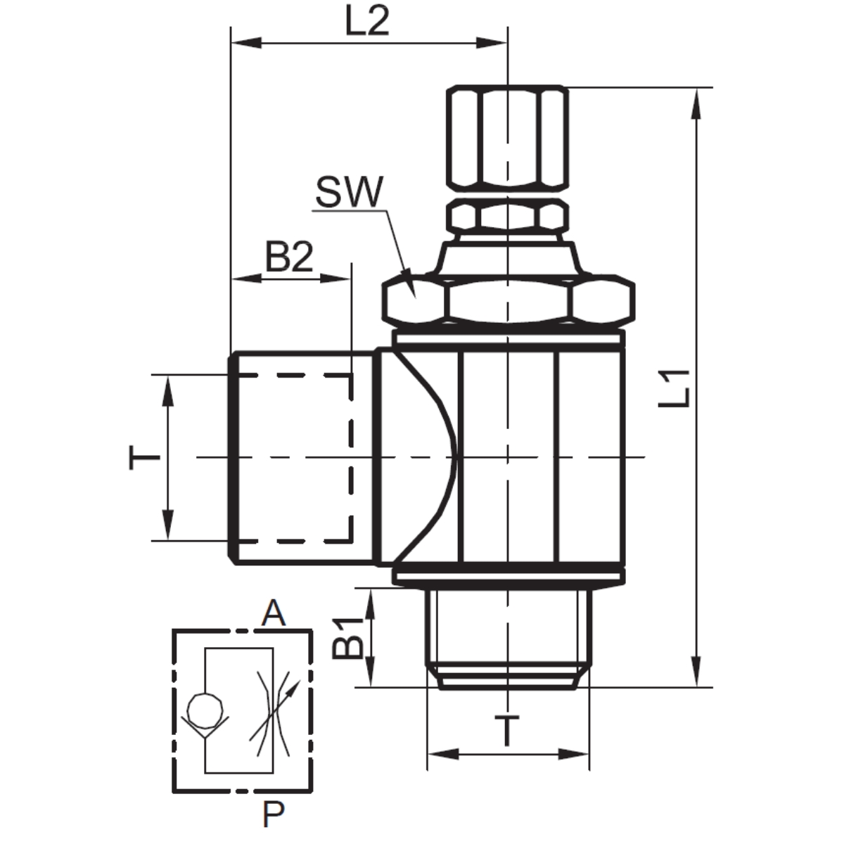 - Zawory dławiąco - zwrotne kątowe z podwójnym gniazdem gwintowanym, regulacja pokrętłem typ 80.5082*3