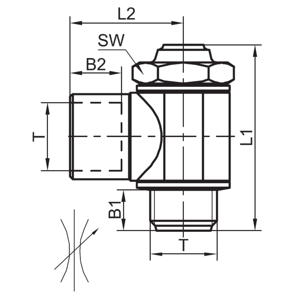 - Zawory dławiące z gniazdem kątowe z gwintem zewnętrznym, regulacja śrubokrętem typ 80.5091*3