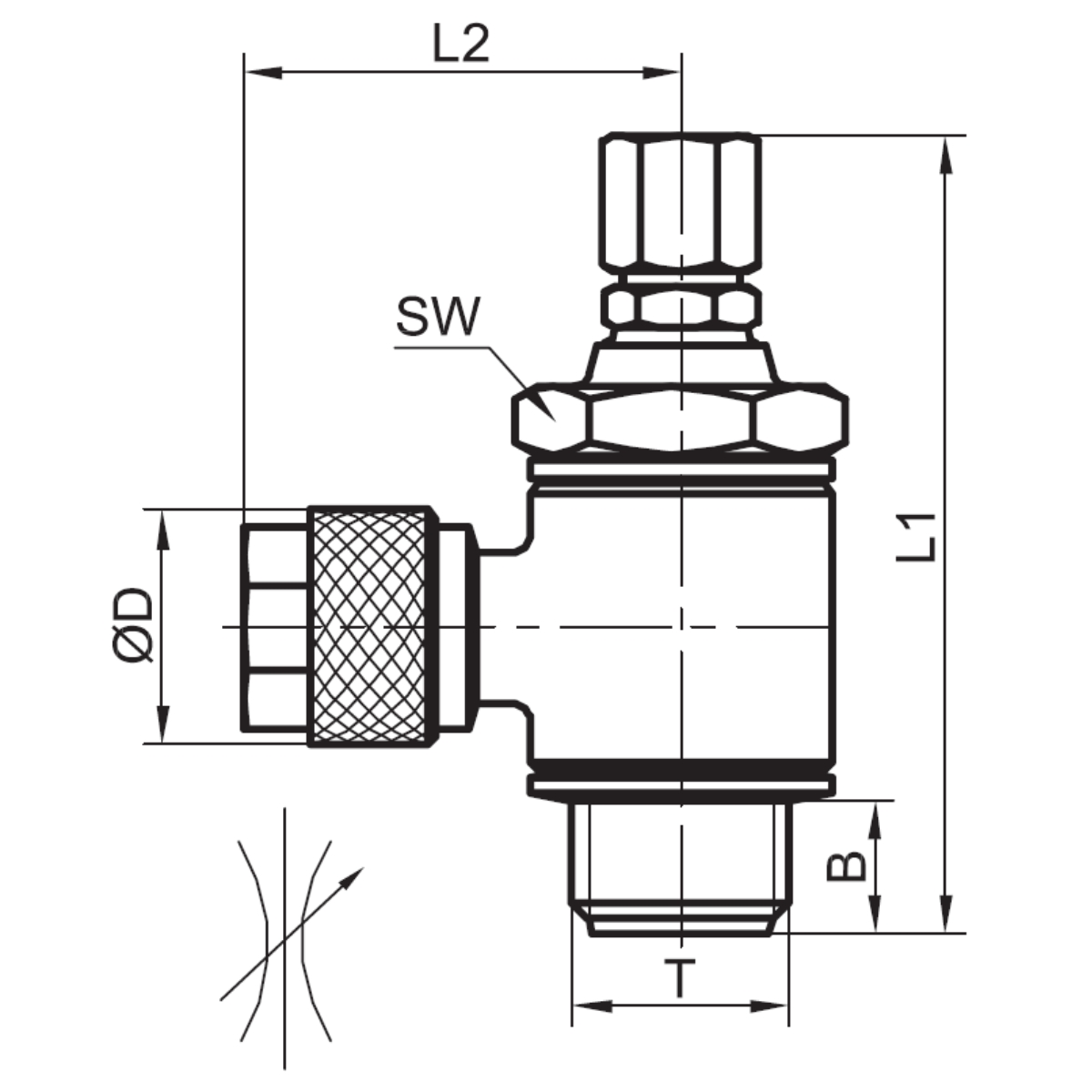 - Zawory dławiące skręcane kątowe z gwintem zewnętrznym, regulacja pokrętłem typ 80.5092*2