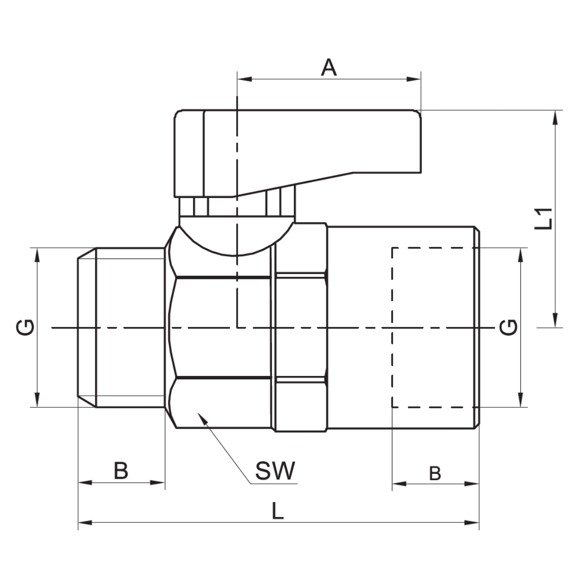 Zawór odcinający, kulkowy z gwintem wewnętrznym i zewnętrznym.