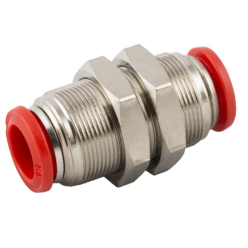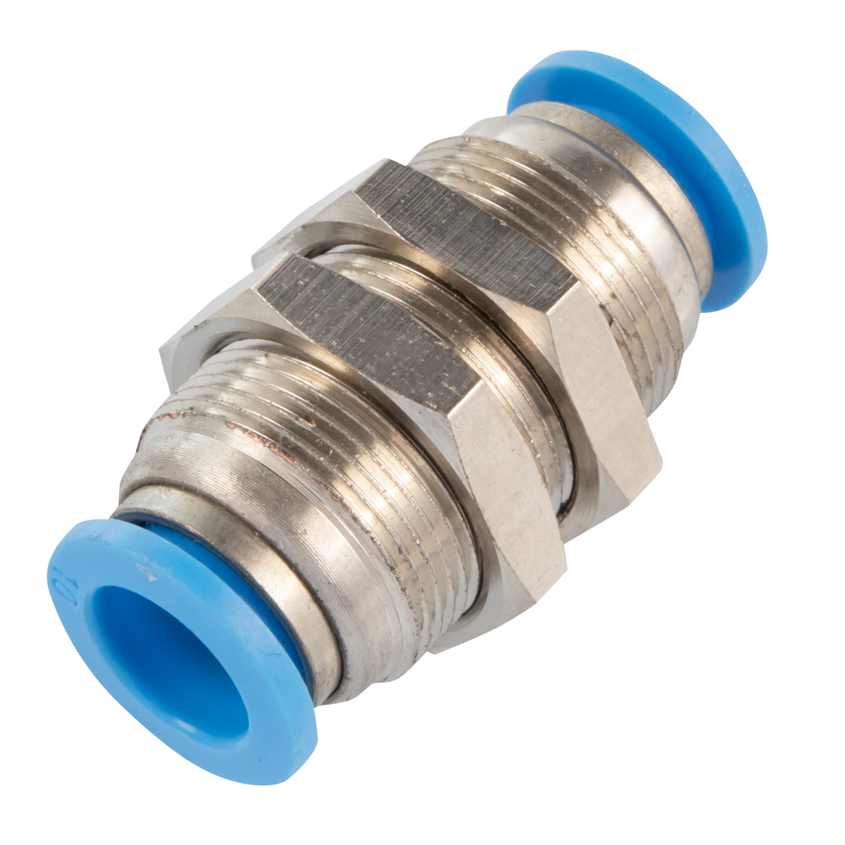 84.0050.08.08 - Złączka pneumatyczna wtykowa prosta grodziowa M16 do przewodu fi 8 mm, mosiądz niklowany