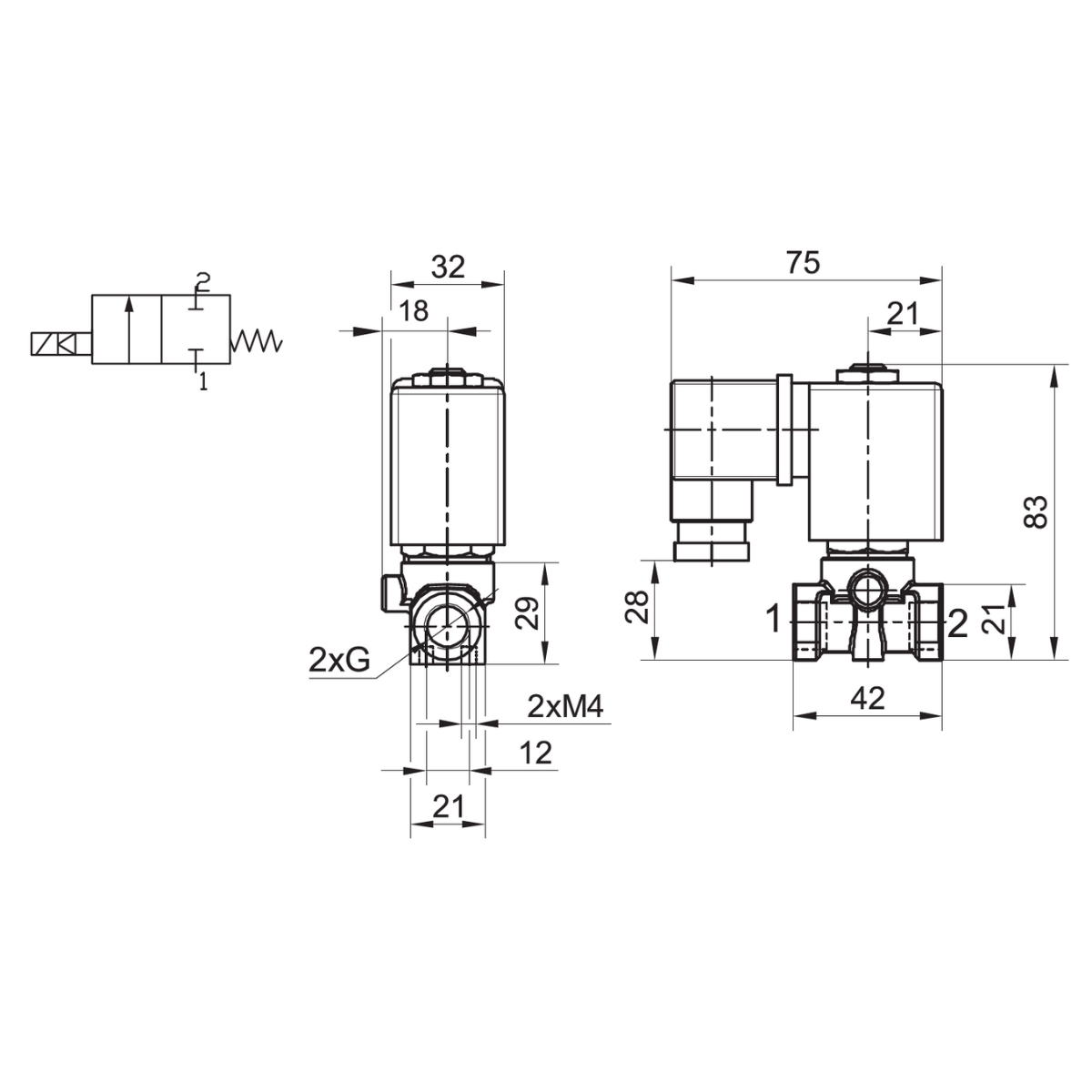 - Pośredniego działania 2/2 NZ od 0,5 bar